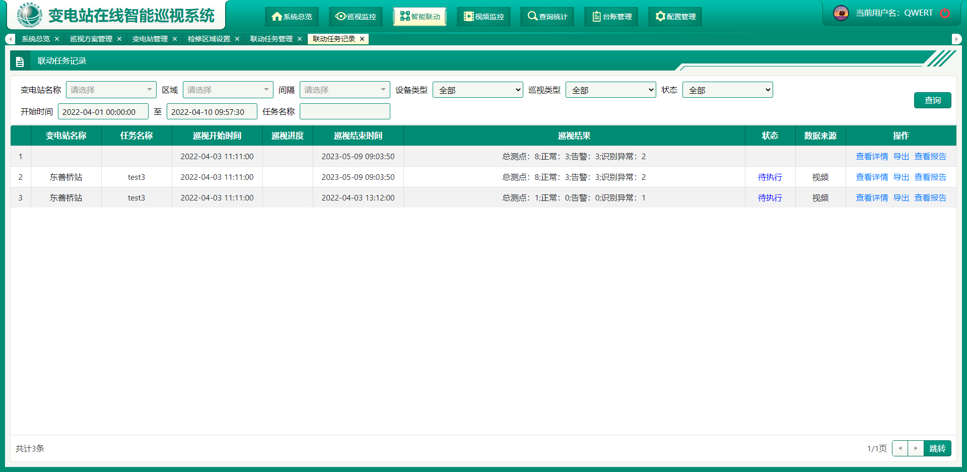 通过人工智能技术的应用,实现可视化巡视图像的智能识别、自动分类、数据分析,配合自主巡视任务制定,实现例行巡视、特殊巡视、专项巡视、自定义巡视及静默监视,有效降低运维人员巡视工作量和巡视压力。