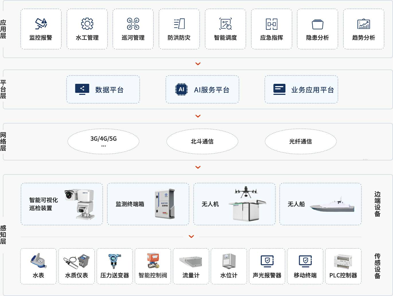 半岛官方站网站在线-PeninSula体育网(中国)创新积极响应水利部《关于大力推进智慧水利建设的指导意见》、《“十四五”期间推进智慧水利建设实施方案》等智慧水利建设部署,构建天空地一体化水利感知网,将人工智能、无人机、数字孪生、物联网、大数据等技术应用于水利系统智能运维管理领域。以水利数字基础设施、数据资源体系、网络安全保障为支撑,以数字孪生流域为核心,全面推进算据、算法、算力建设,设计、研发完成了具有预报、预警、预演、预案功能的智慧水利体系平台,涵盖2+N水利智能业务应用体系,实现信息技术与水利业务的深度融合。